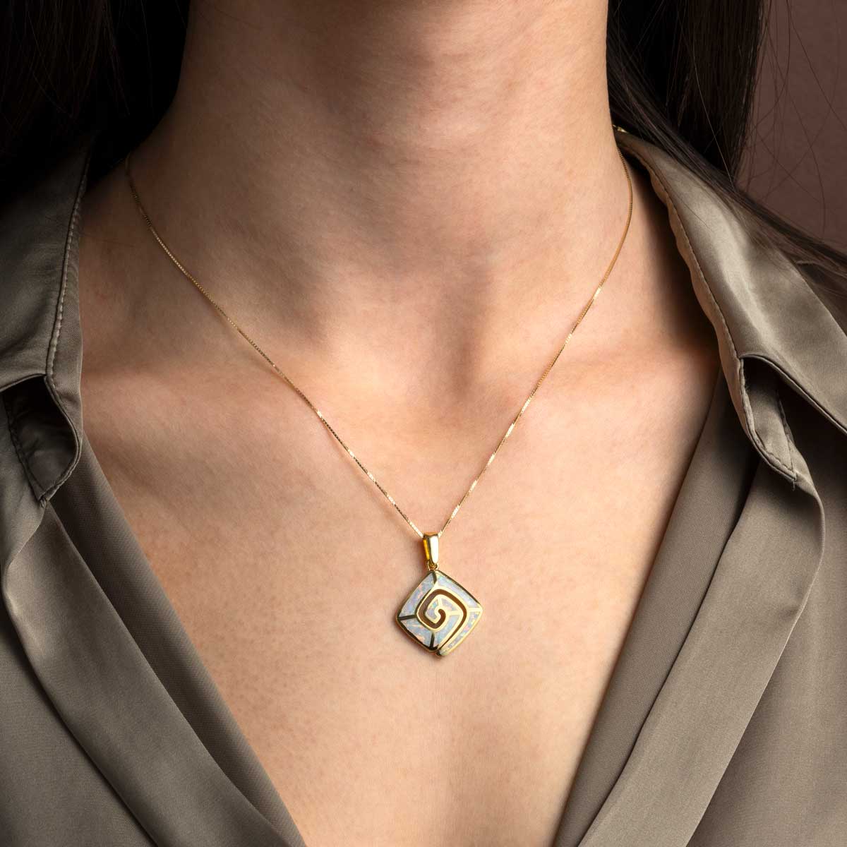 White Opal Meander Pendant 925 Sterling Silver Gold Plated