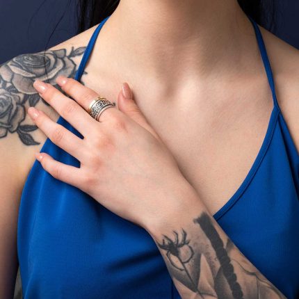 Spiral Spinner Ring – 925 Sterling Silver and 14K Gold