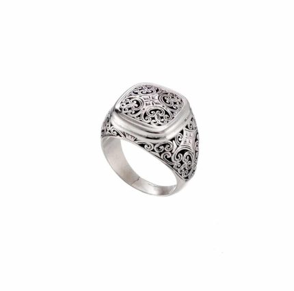 Vintage Flower Ring – Oxidized Silver & Pearl