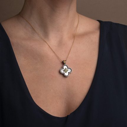 Turquoise Cross Cord Necklace – Sterling Silver and Gold plated