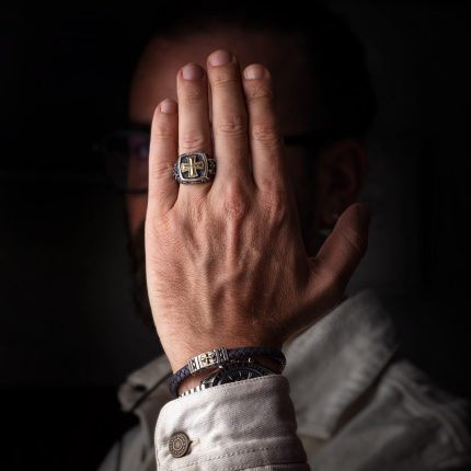 Cross Ring – 14k Solid Gold & Sterling Silver