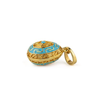 Greek Key Egg Pendant Necklace with Enamel – Sterling Silver and Gold Plated