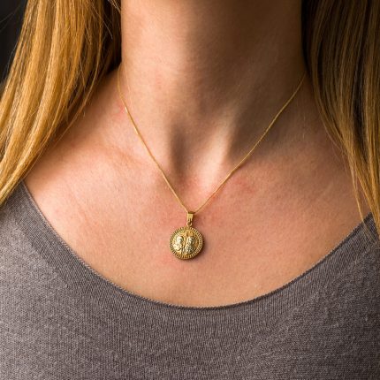 Egg Pendant Necklace with Cross – Sterling Silver Gold Plated with Turquoise Enamel