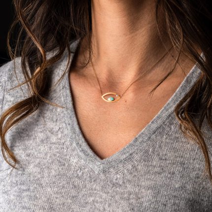 Evil Eye Necklace – 14K Gold with Turquoise Enamel