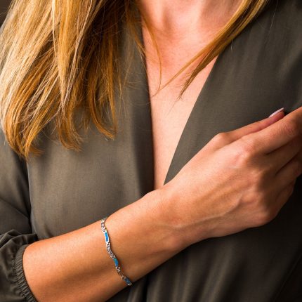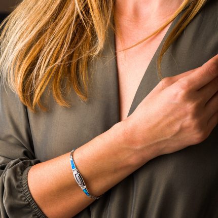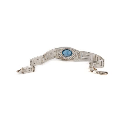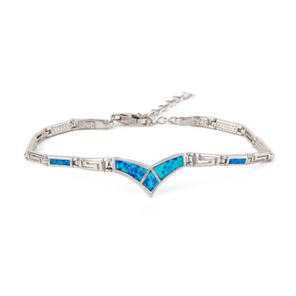 Greek Key Meander Blue Opal Bracelet – 925 Sterling Silver