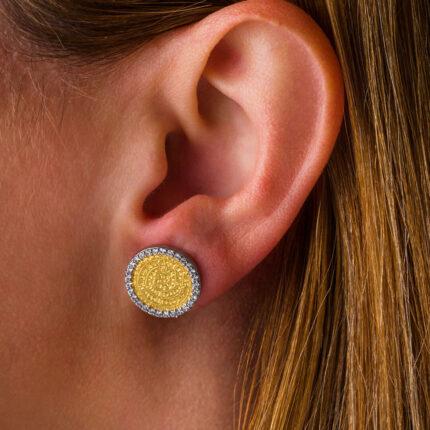 Phaistos Disk Stud Zircon Earrings – 925 Sterling Silver Gold Plated