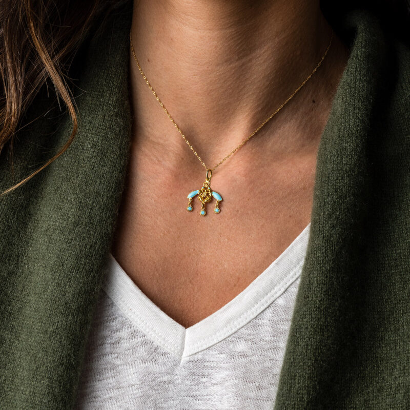 598,00€Filigree Egg Pendant – 14k Gold and Turquoise Enamel