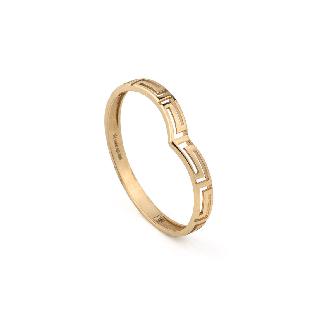 14K Yellow Gold V-Shape Greek Key Ring