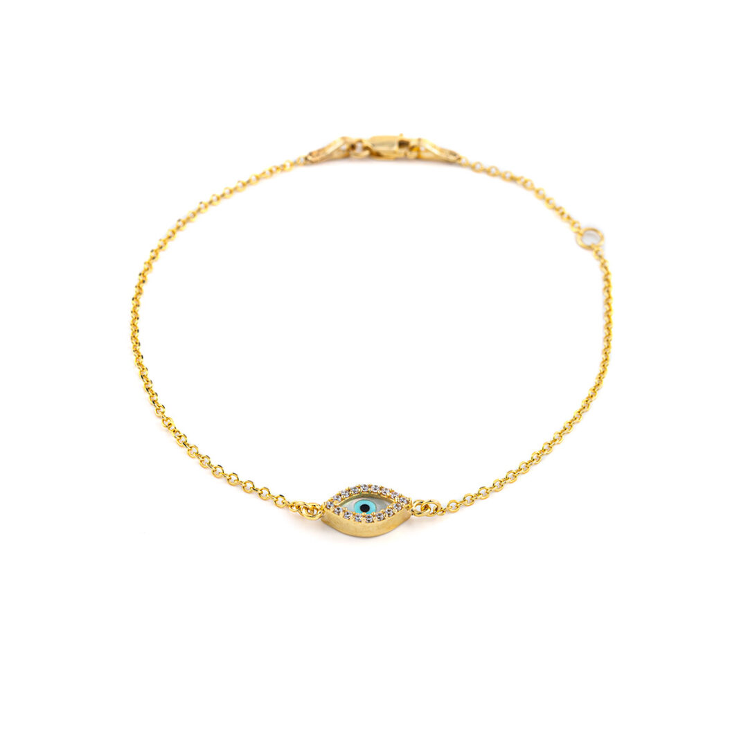 Chain bracelet with the evil eye symbol decorated with white zircons.