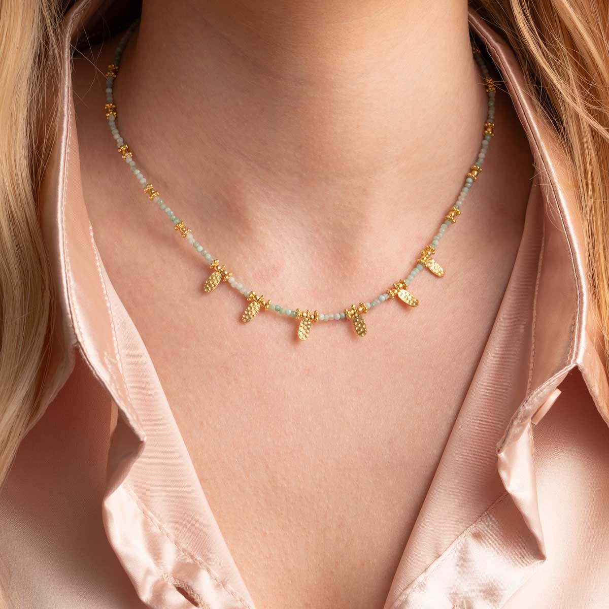 Amazonite Beads Necklace in 925 Sterling Silver Gold Plated