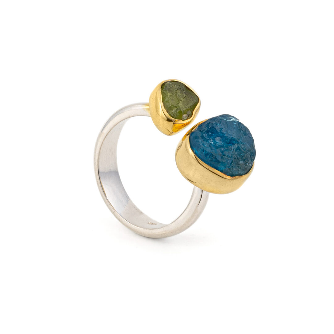 Apatite and Peridot Ring – 925 Sterling Silver and Gold Plated