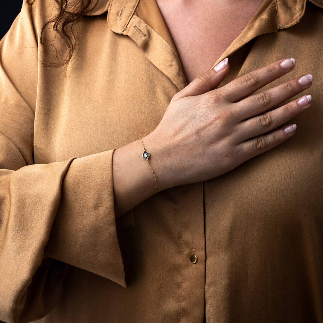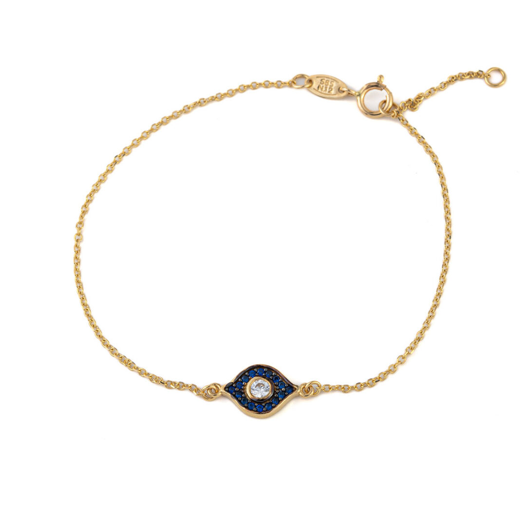 Blue Evil Eye Bracelet – 14K Yellow Gold