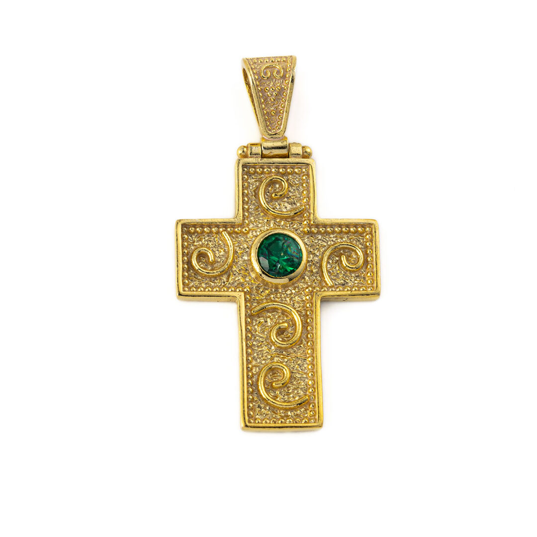 Byzantine Cross Pendant with Zircon – 925 Sterling Silver Gold Plated