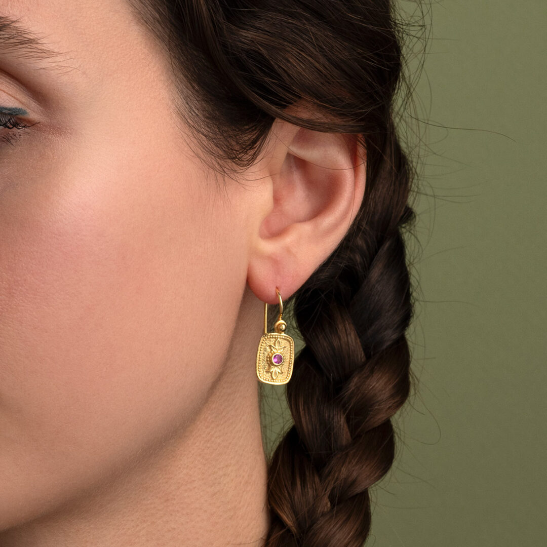 Byzantine Drop Earrings with Red Zircon – 925 Sterling Silver