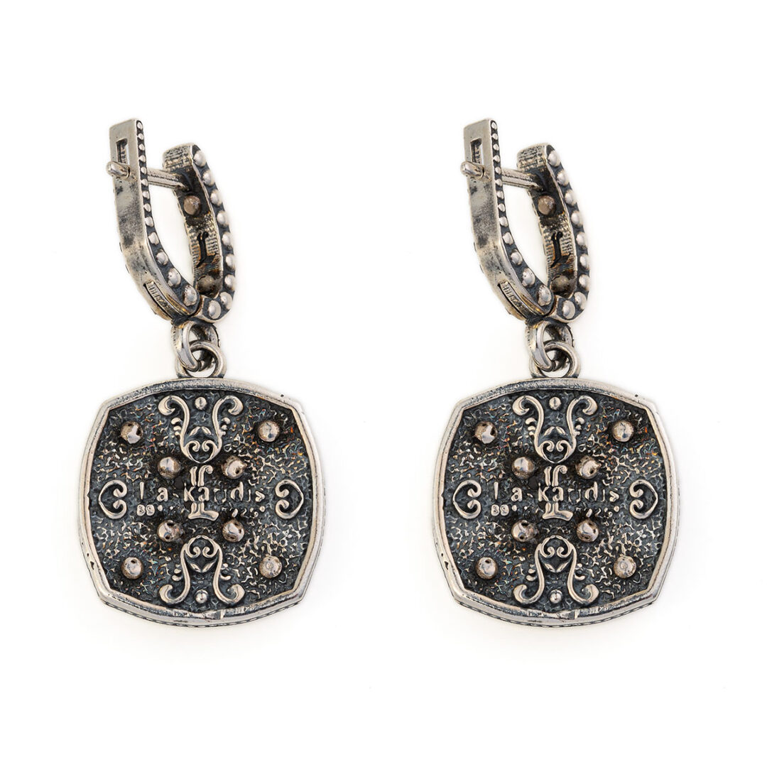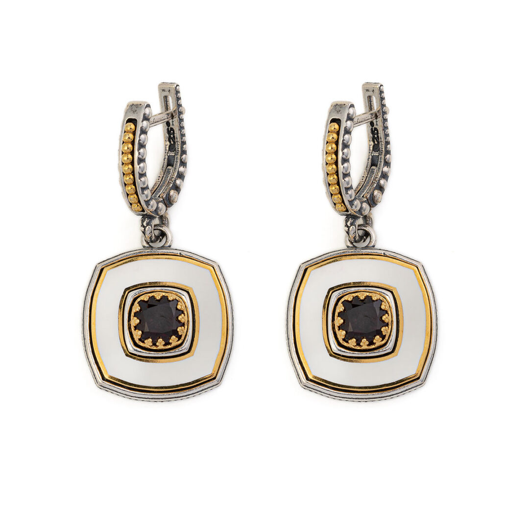 Byzantine Earrings with Natural Garnet Gemstone and White Enamel