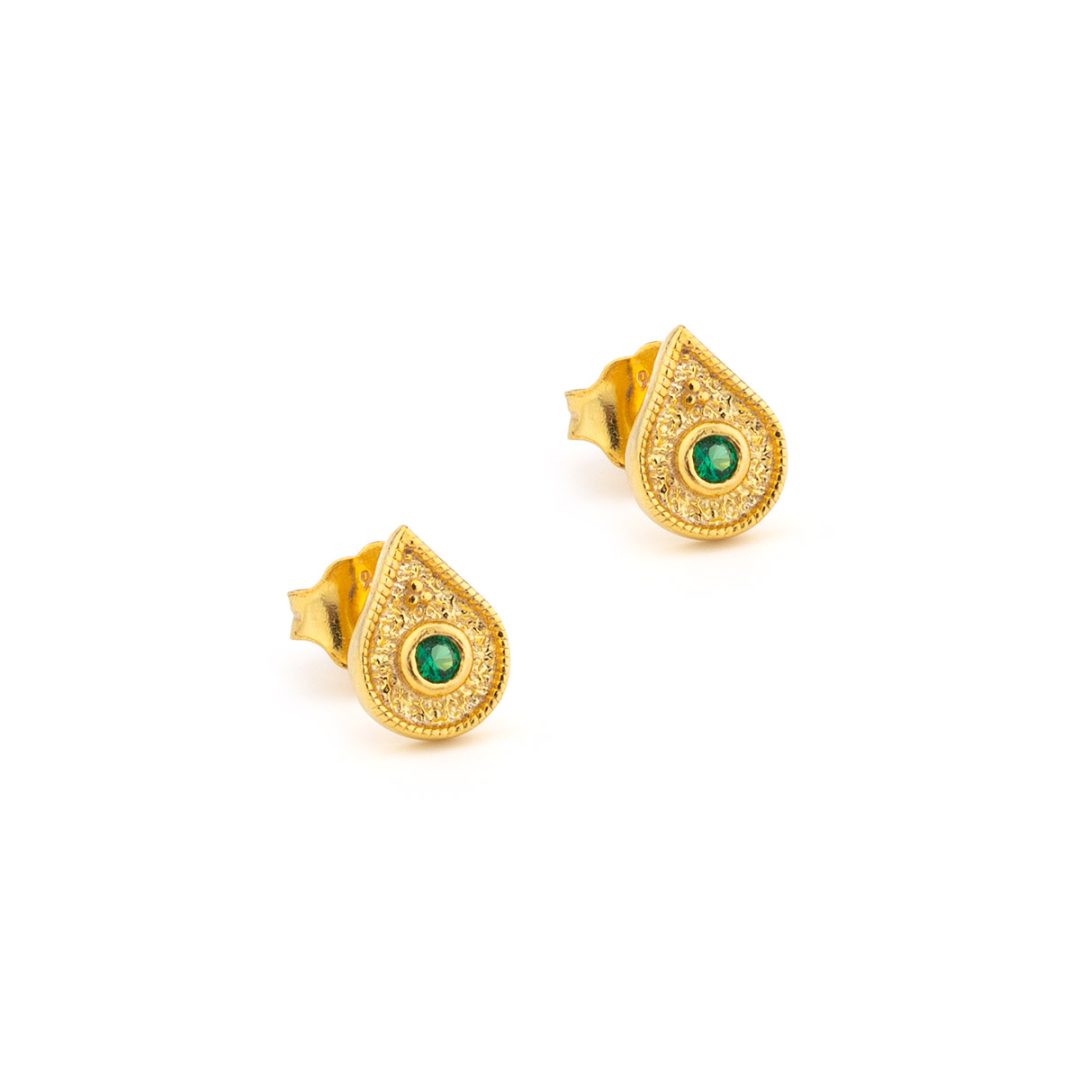 Byzantine Mini Tear Drop Stud Earrings with Zircon