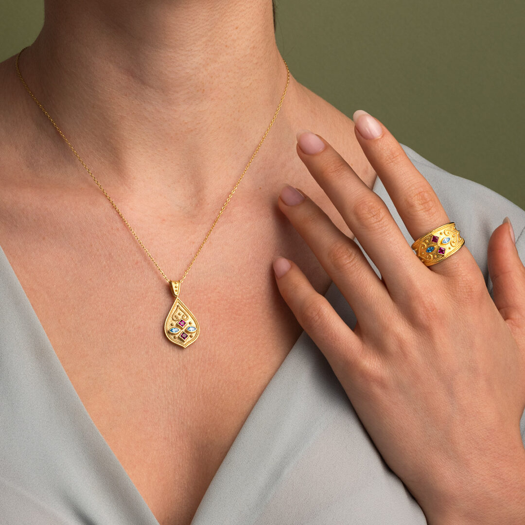 Byzantine Ring with Multicolor Zircon Stone – Sterling Silver and 18K Gold Plating