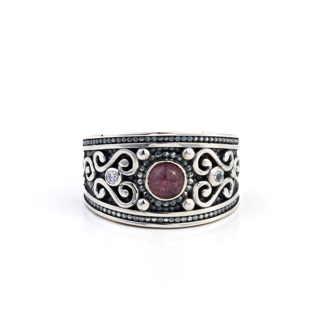 Byzantine Ring with Pink Tourmaline – 925 Sterling Silver