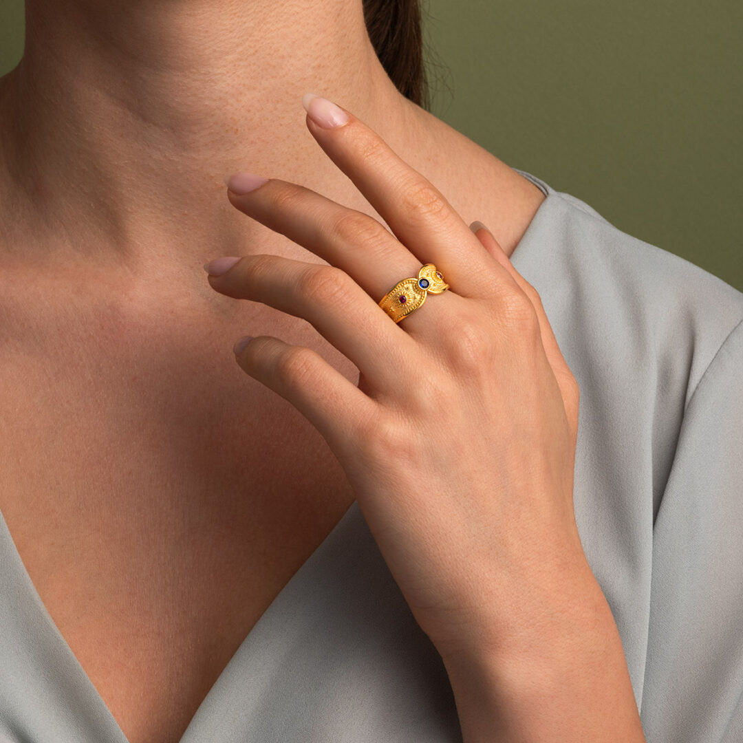 Byzantine Ring with Zircon Stones – Sterling Silver and 18K Gold Plating