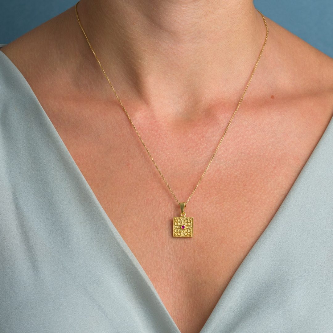 Byzantine Square Pendant in Gold Plated 925 Silver with Zircon
