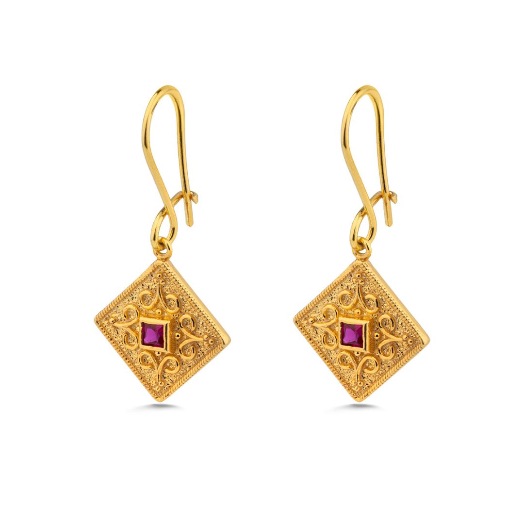 Earrings inspired by Byzantine art, decorated with Cubic Zirconia (CZ).