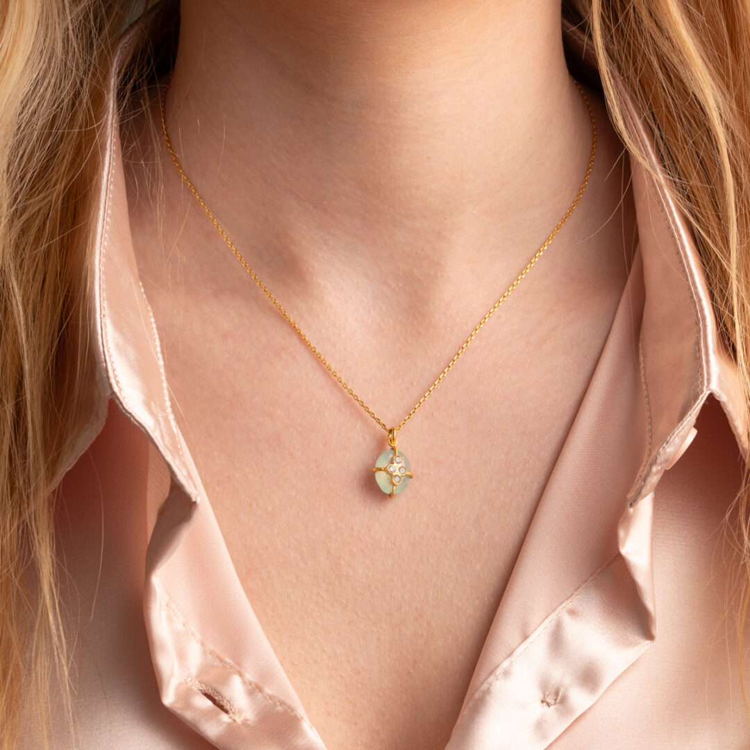 Circle Aquamarine Necklace in 925 Sterling Silver with 18K Gold Plating