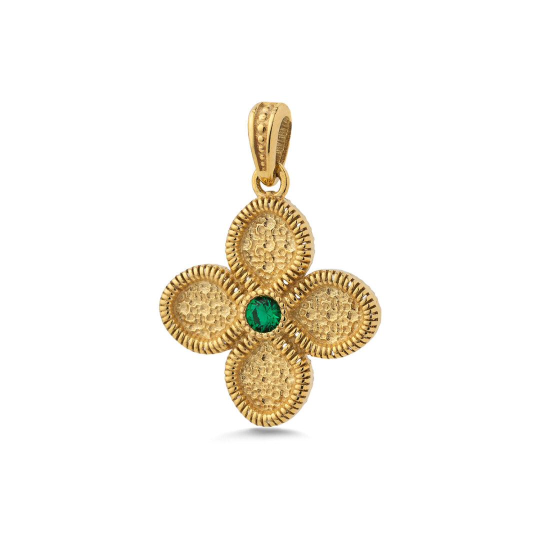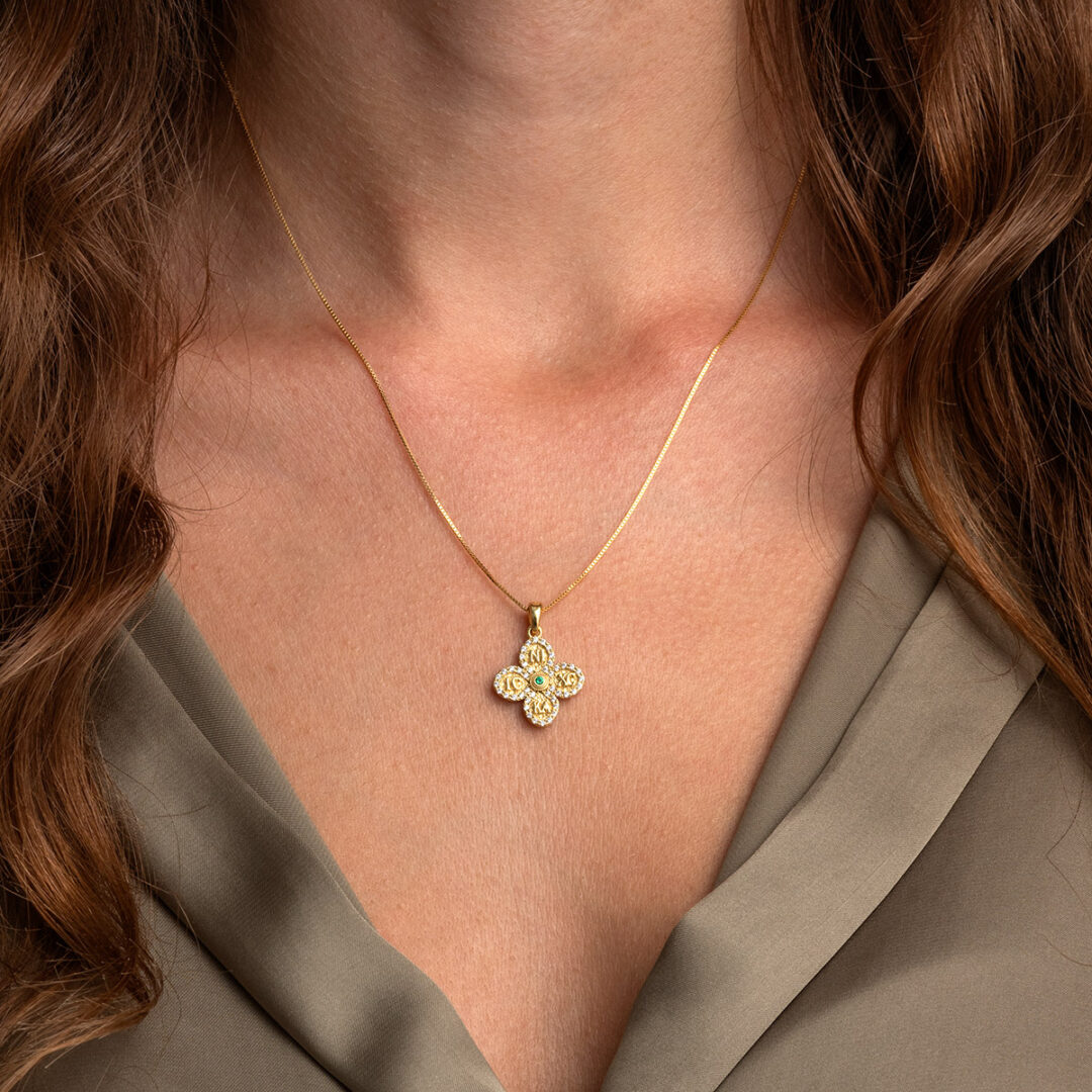 Constantinato Cross with Green Zircon Stones