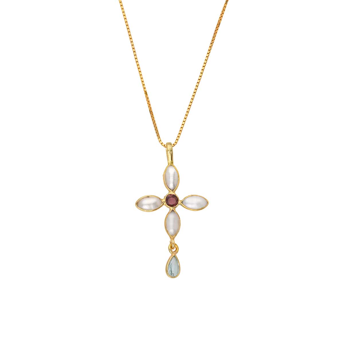 Cross Gemstone Necklace in 925 Sterling Silver Gold Plated