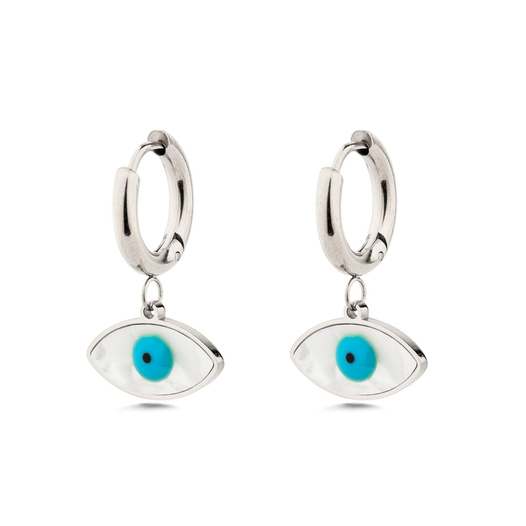 Evil Eye Earrings with Ocean Blue Details in Stainless Steel
