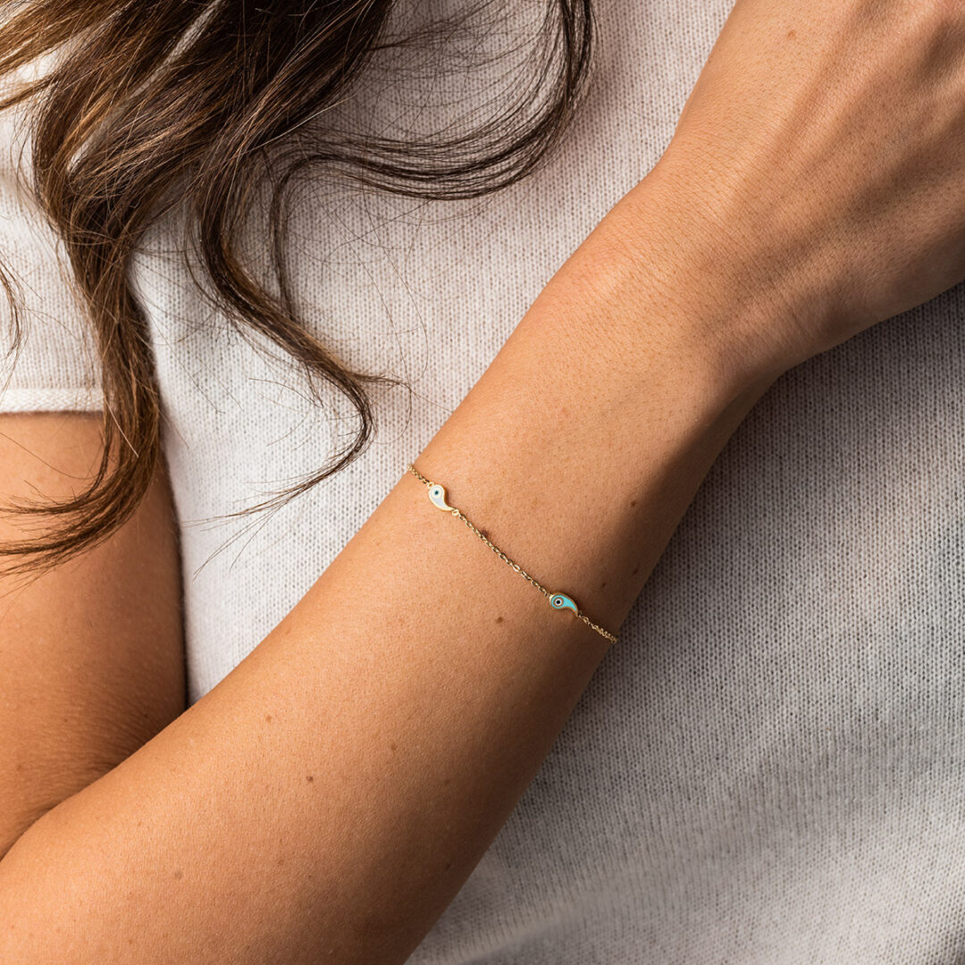 Evil Eyes Chain Bracelet – 14K Gold and Turquoise White Enamel