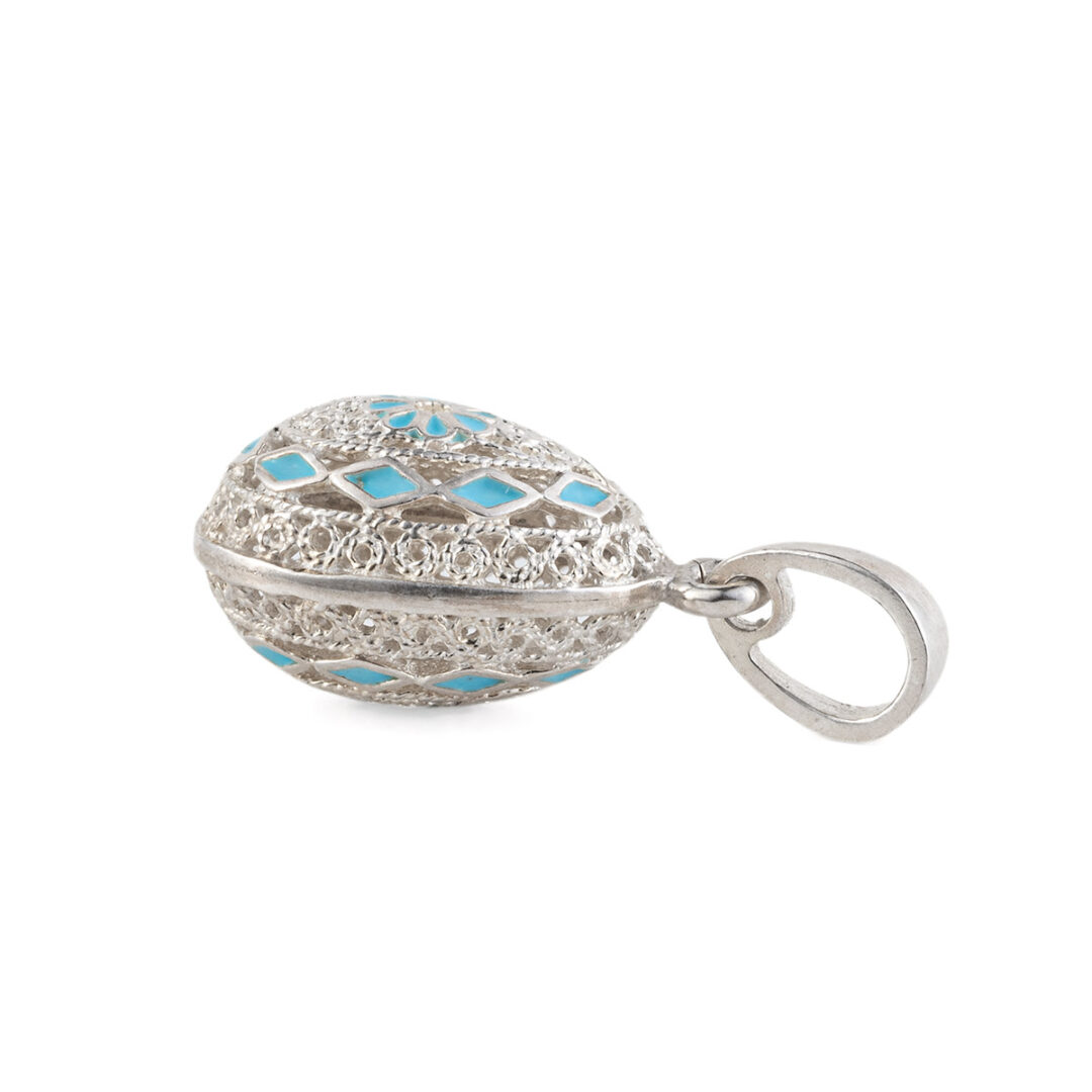 Filigree Flower Egg Pendant Necklace – Sterling Silver and Enamel