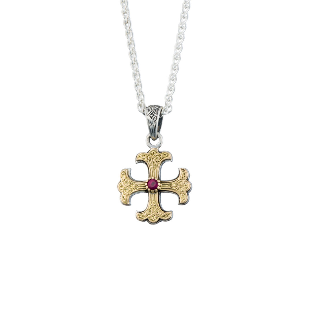 Gerochristo – Classic Cross in 18K Gold and Sterling Silver with ruby