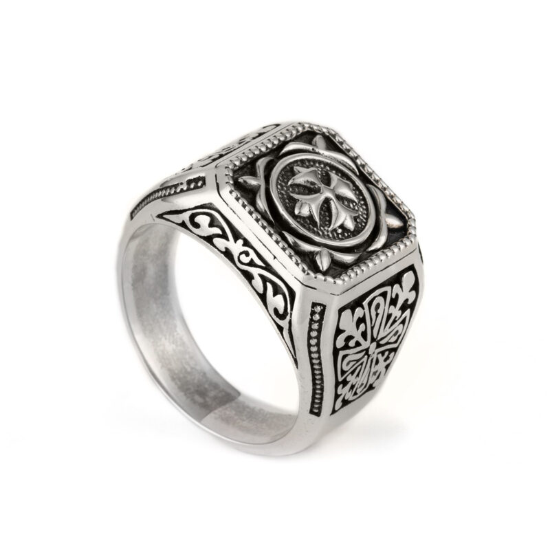 Fleur de lis Signet Cross Ring – Sterling Silver Yianni Jewelry