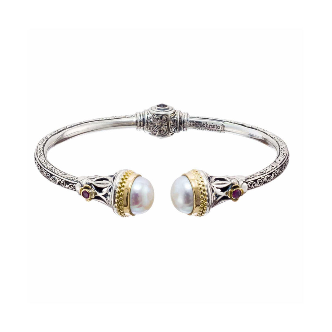 Bracelet in 18K Gold, sterling silver, rubies and freshwater pearls.