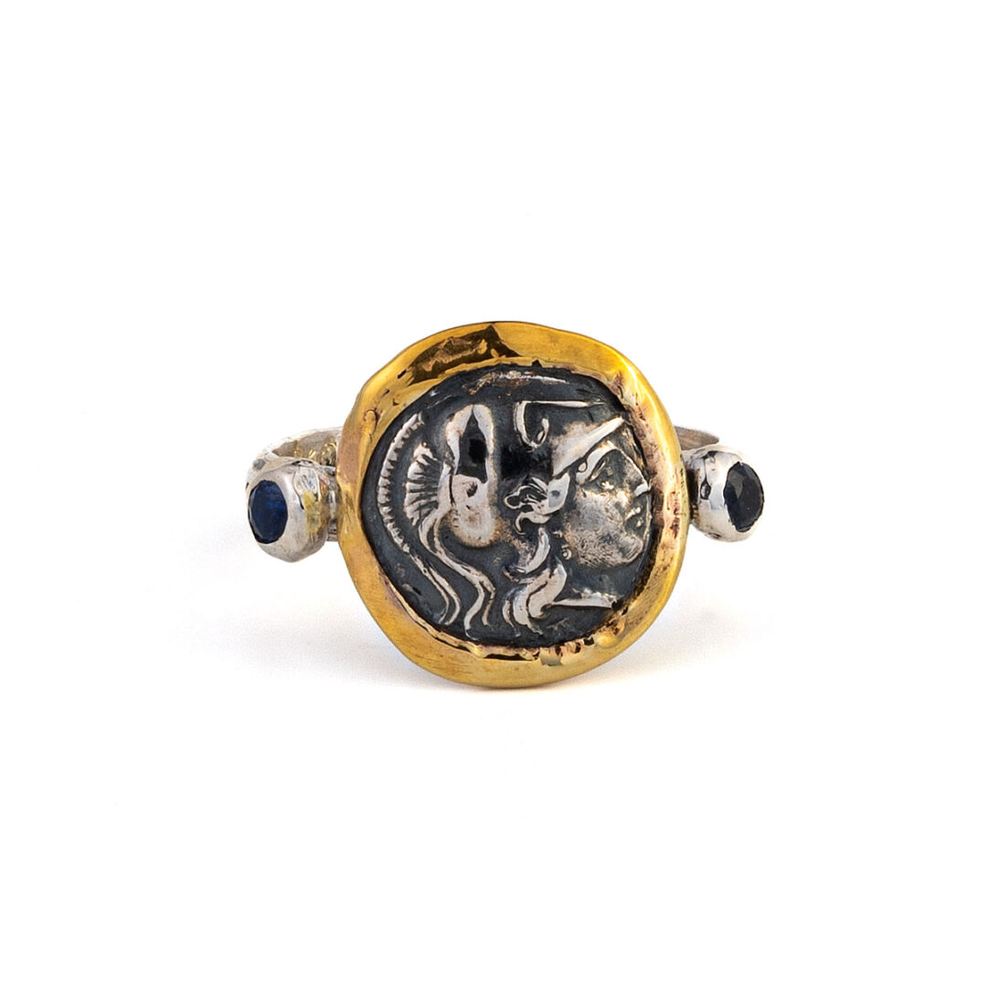 Goddess Athena Ring with Sapphires – 14K Gold and Sterling Silver