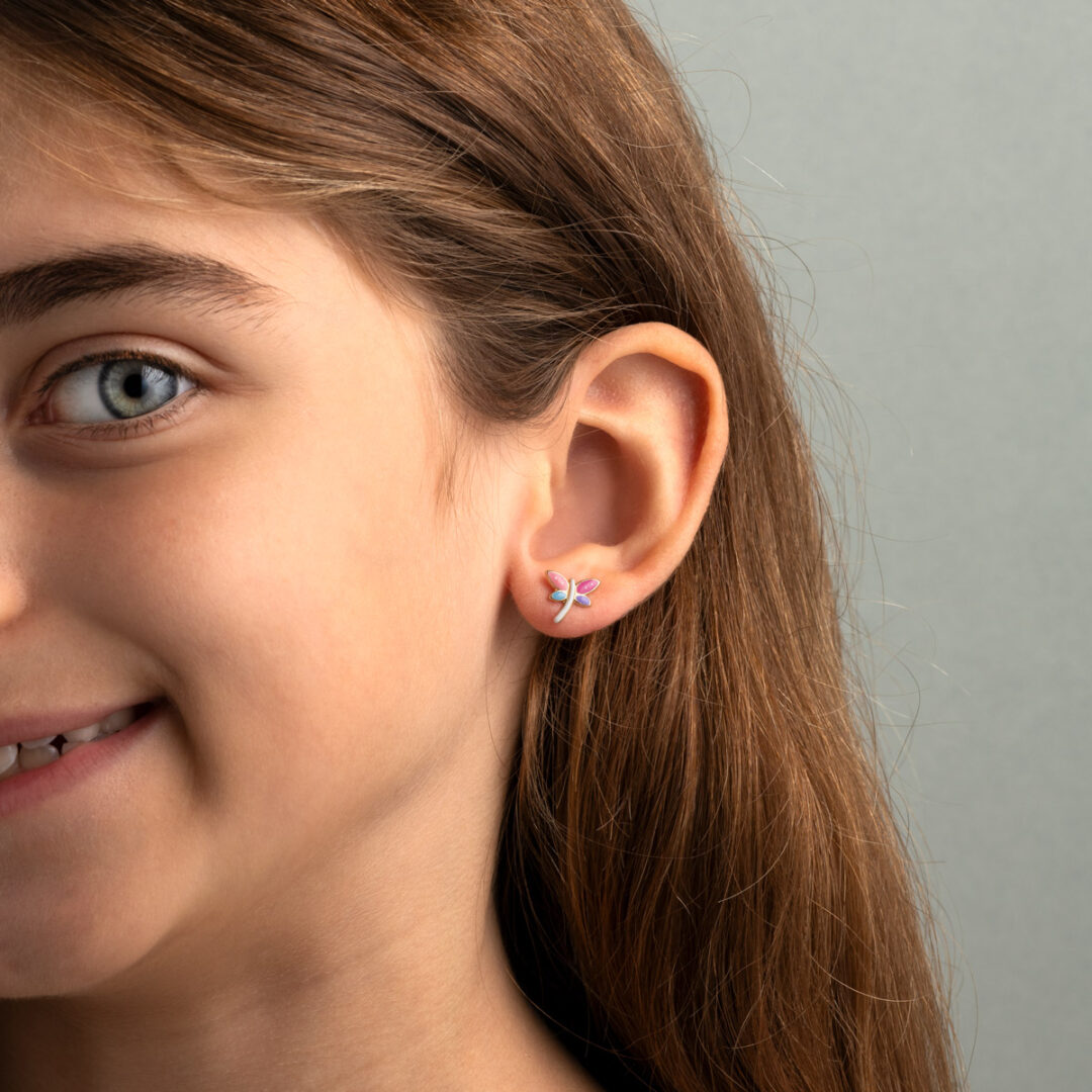 Adorable 9K gold butterfly stud earrings for girls, featuring multicolor enamel, a sweet and colorful jewelry gift for little ones.
