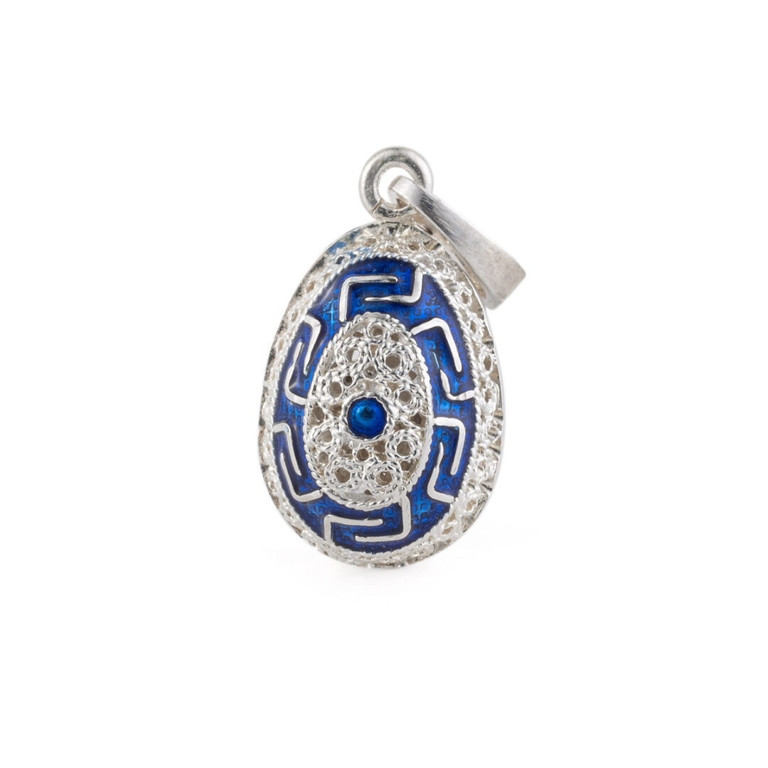 The pendant is embellished with a fine filigree and enamel in Faberge style.