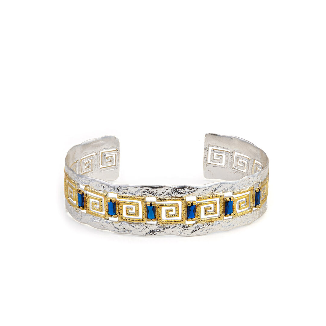 Meandros design is a decorative border constructed from a continuous line, shaped into a repeated motif. Such a design is also called the Greek fret or Greek key design, although these are modern designations. On the one hand, the name “meander” recalls the twisting and turning path of the Meander River in Asia Minor, and on the other hand, as Karl Kerenyi pointed out, “the meander is the figure of a labyrinth in linear form” the meaning is that there is no beginning and no end in some cases so it becomes the symbol of long life and eternity.