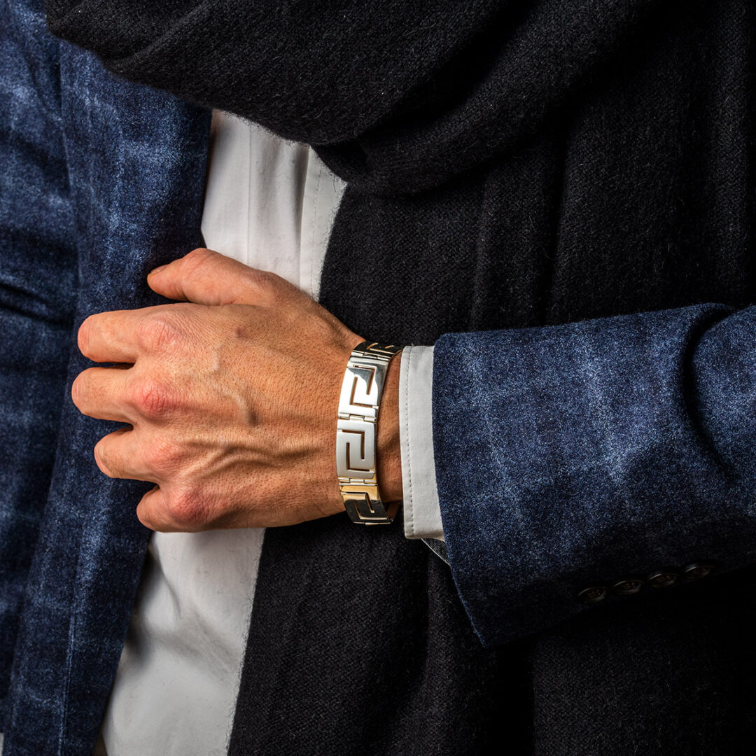 Greek Key Link Bracelet – Sterling Silver and Gold Plated
