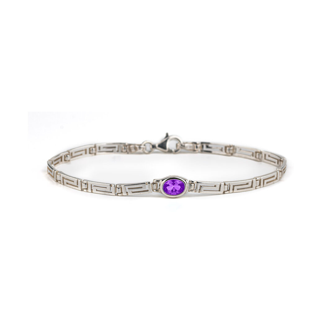 Greek Key Meander Zircon Bracelet – 925 Sterling Silver