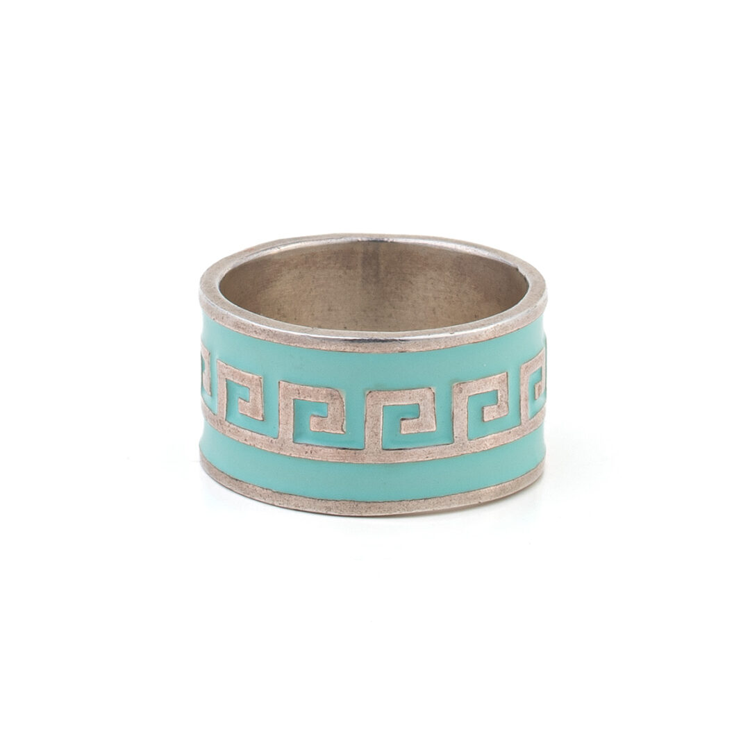 Greek Key Ring Turquoise enamel – 925 Sterling Silver