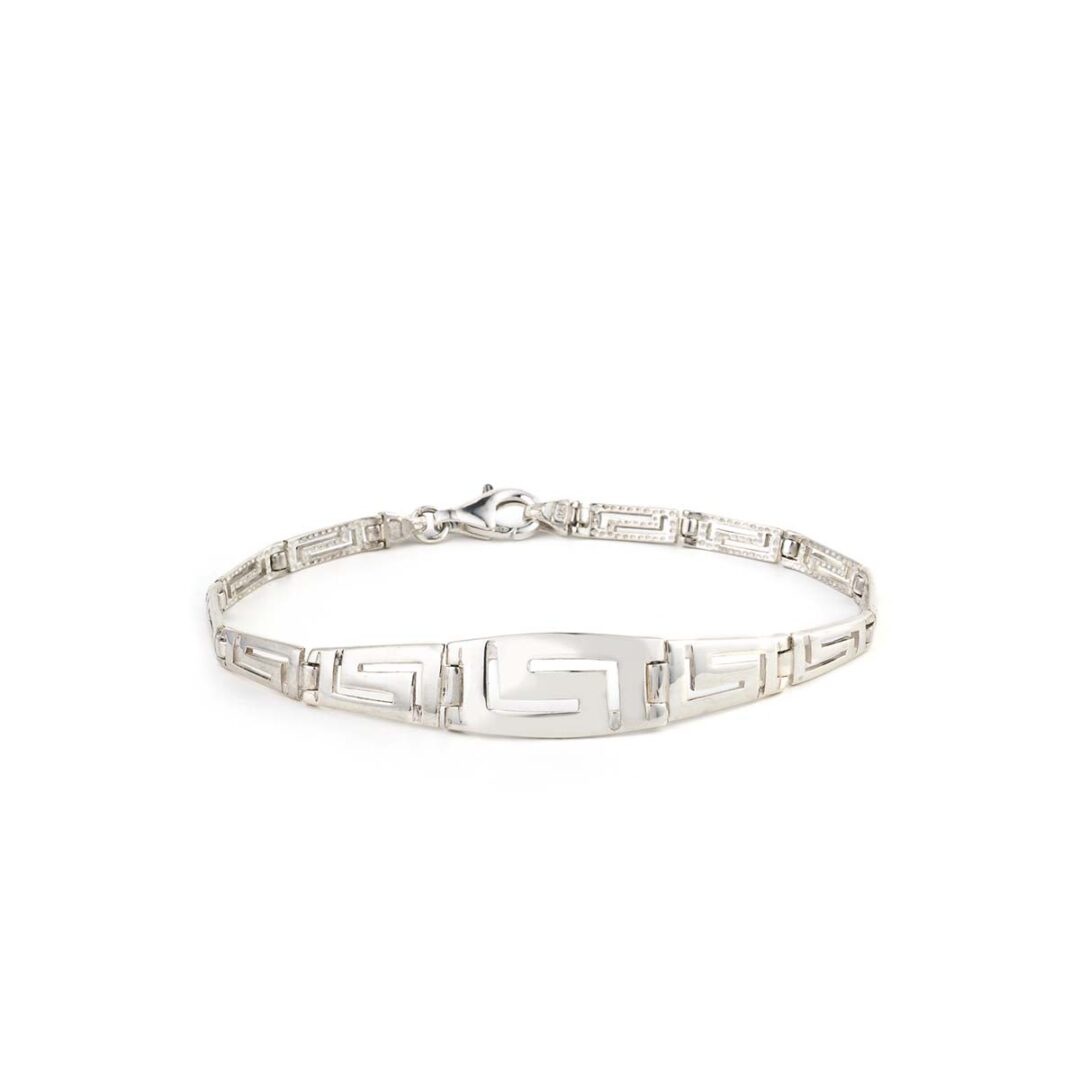 Greek Key Silver Link Bracelet