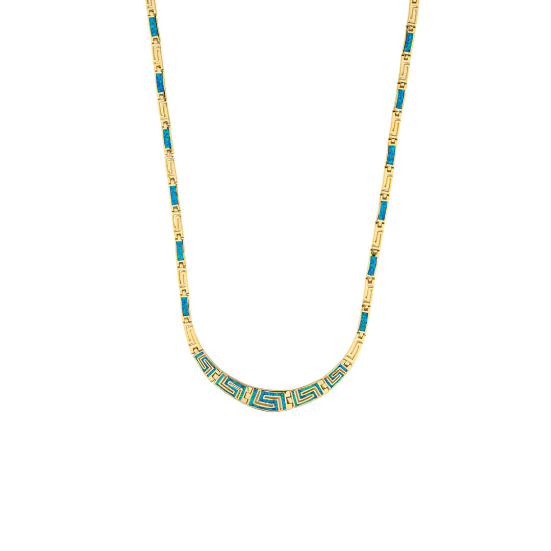 Greek Meander Opal Silver Necklace