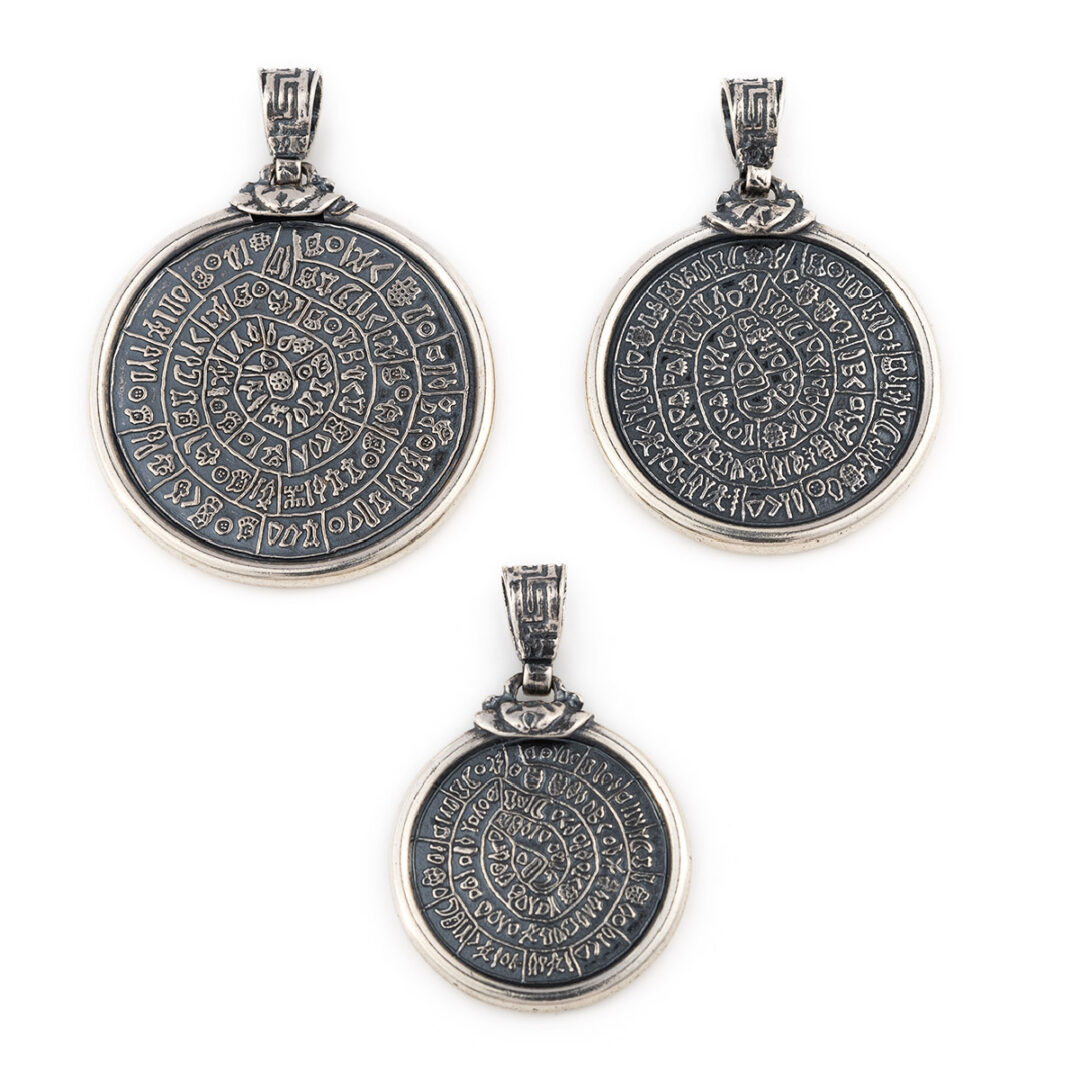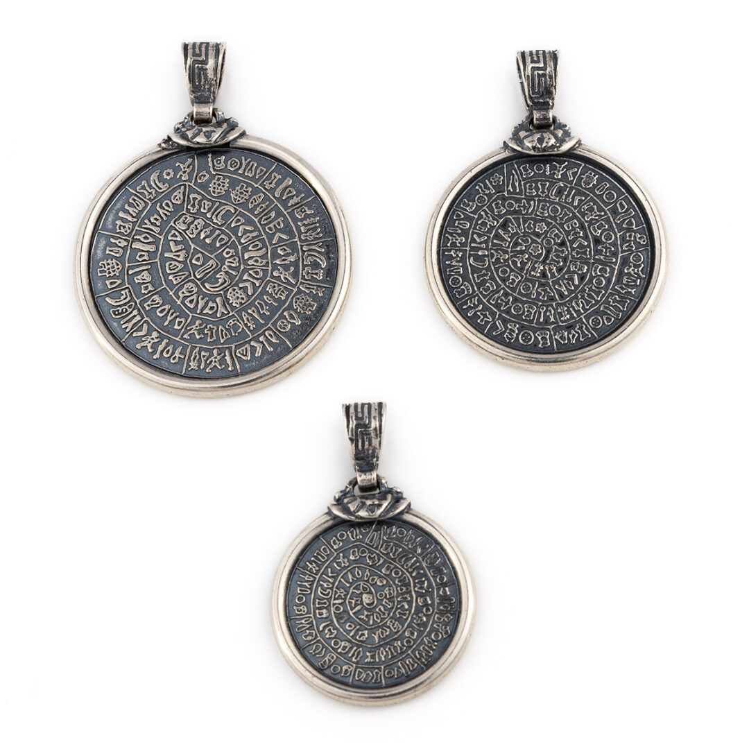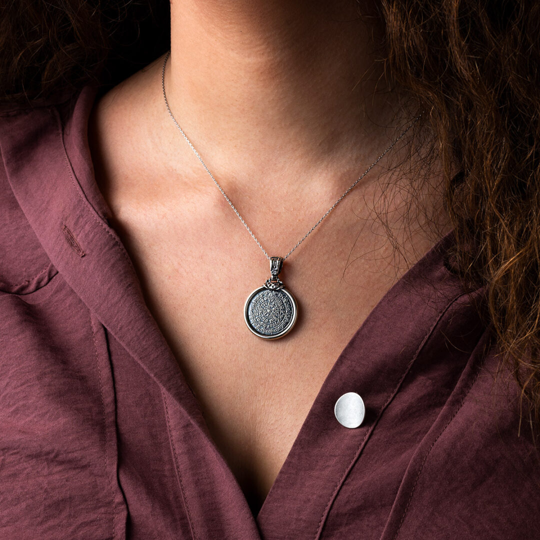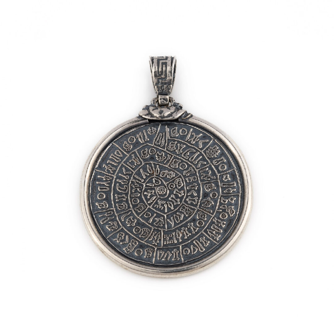 Greek Phaistos Disc Pendant – Sterling Silver