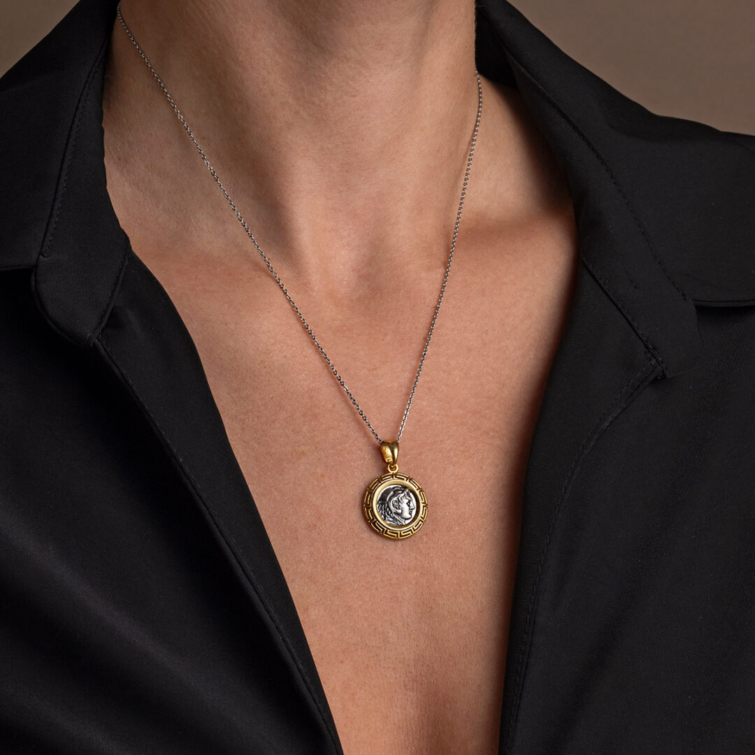 Handmade pendant inspired by the ancient Greek tetradrachm coin, depicting Hercules.