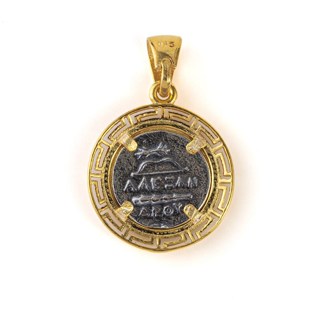 Hercules Pendant with Meander Bezel – 925 Sterling Silver Gold Plated