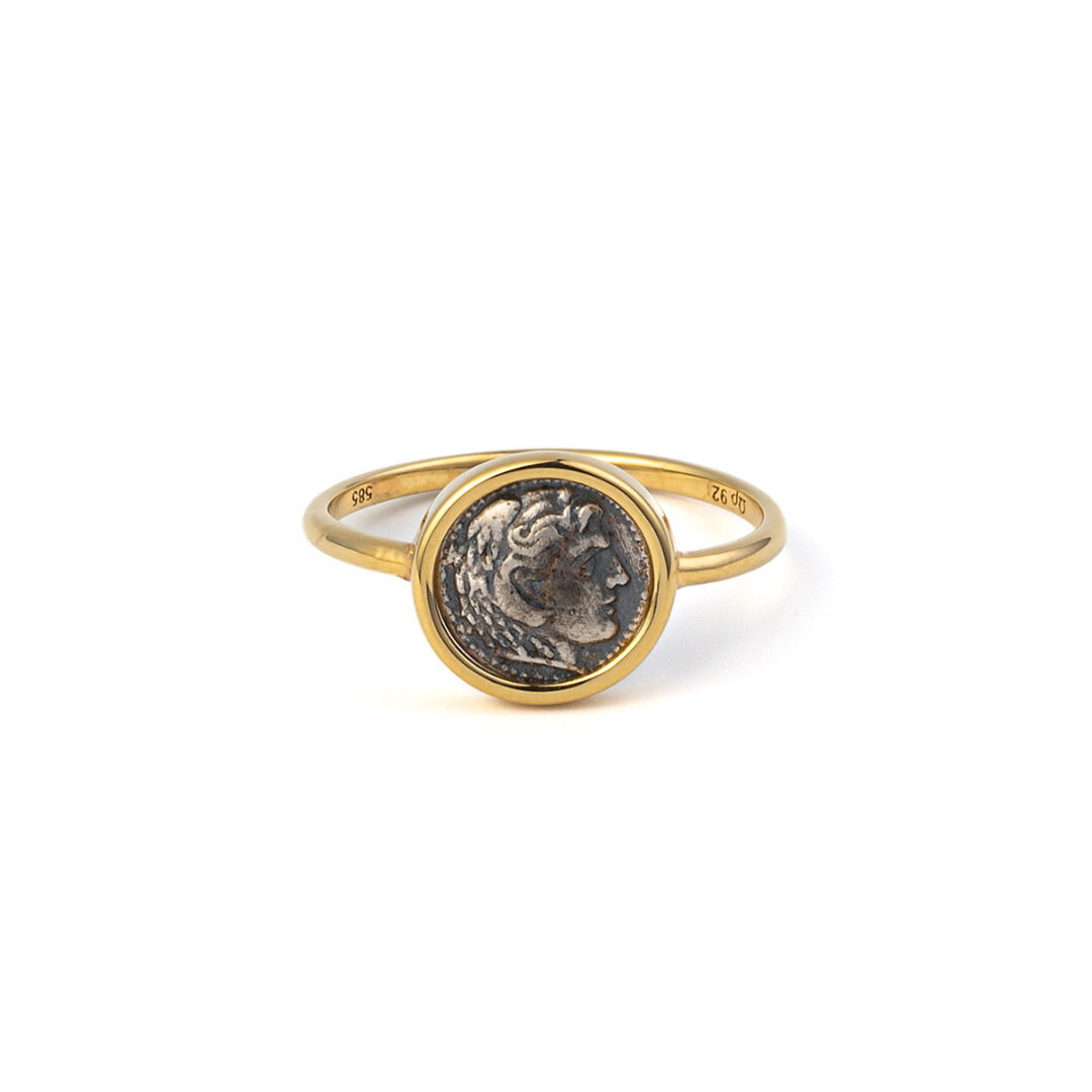 Handmade ring inspired by the ancient Greek tetradrachm coin, depicting Hercules.