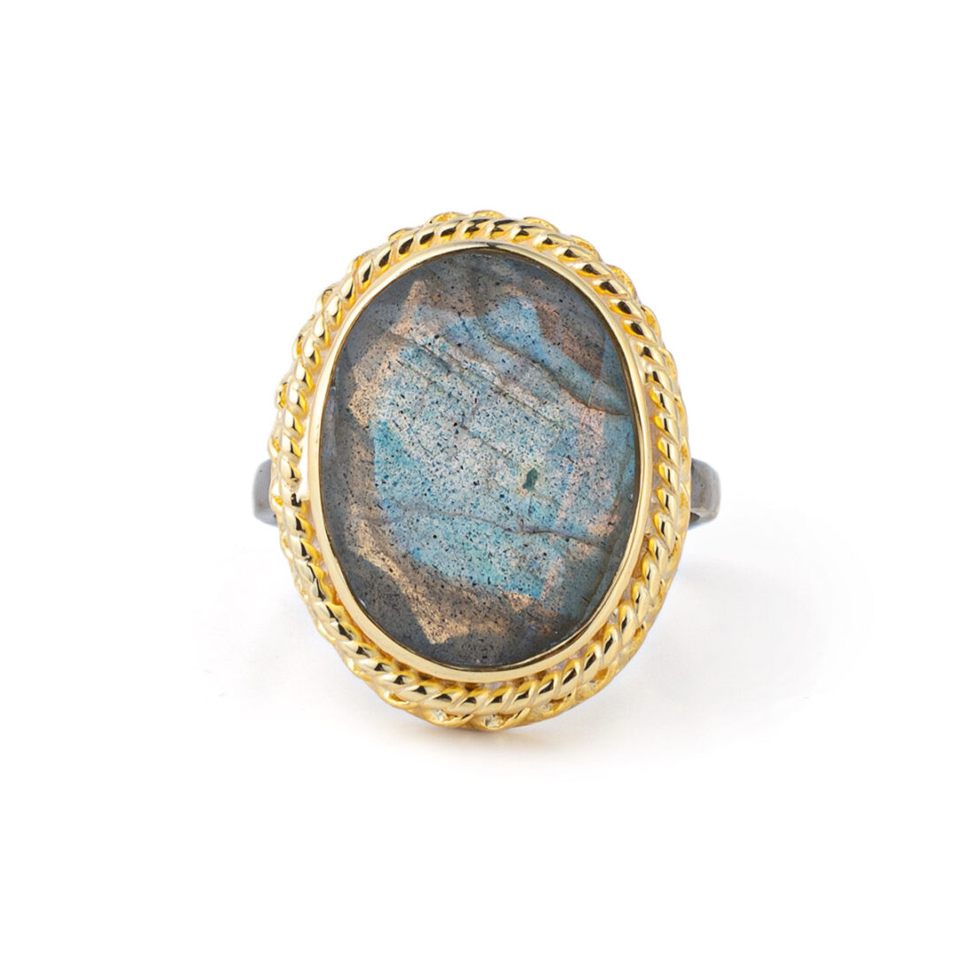 Labradorite Oval Ring- 925 Sterling Silver and Gold Plated