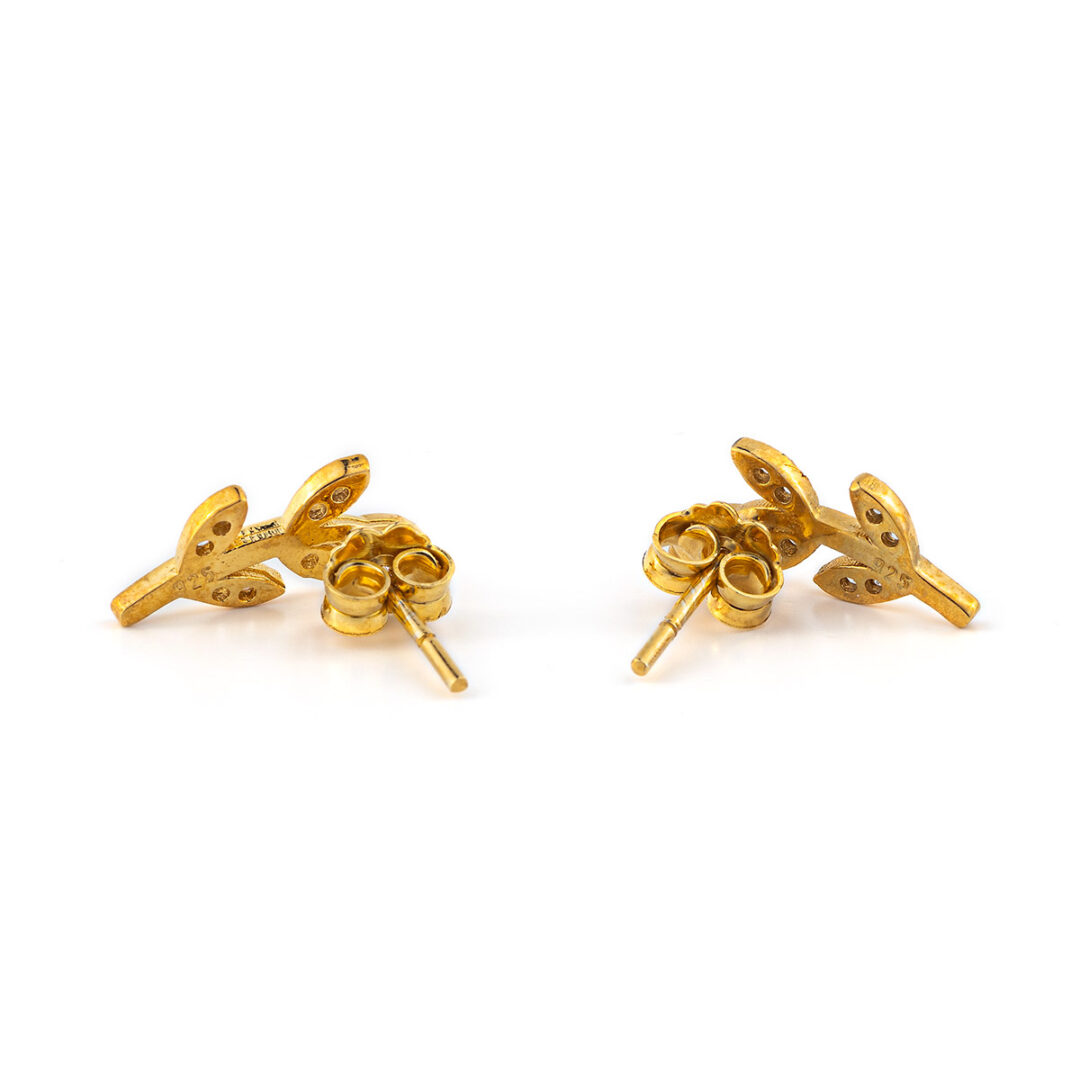 Leaf Zircon Earrings – 14K Solid Yellow Gold