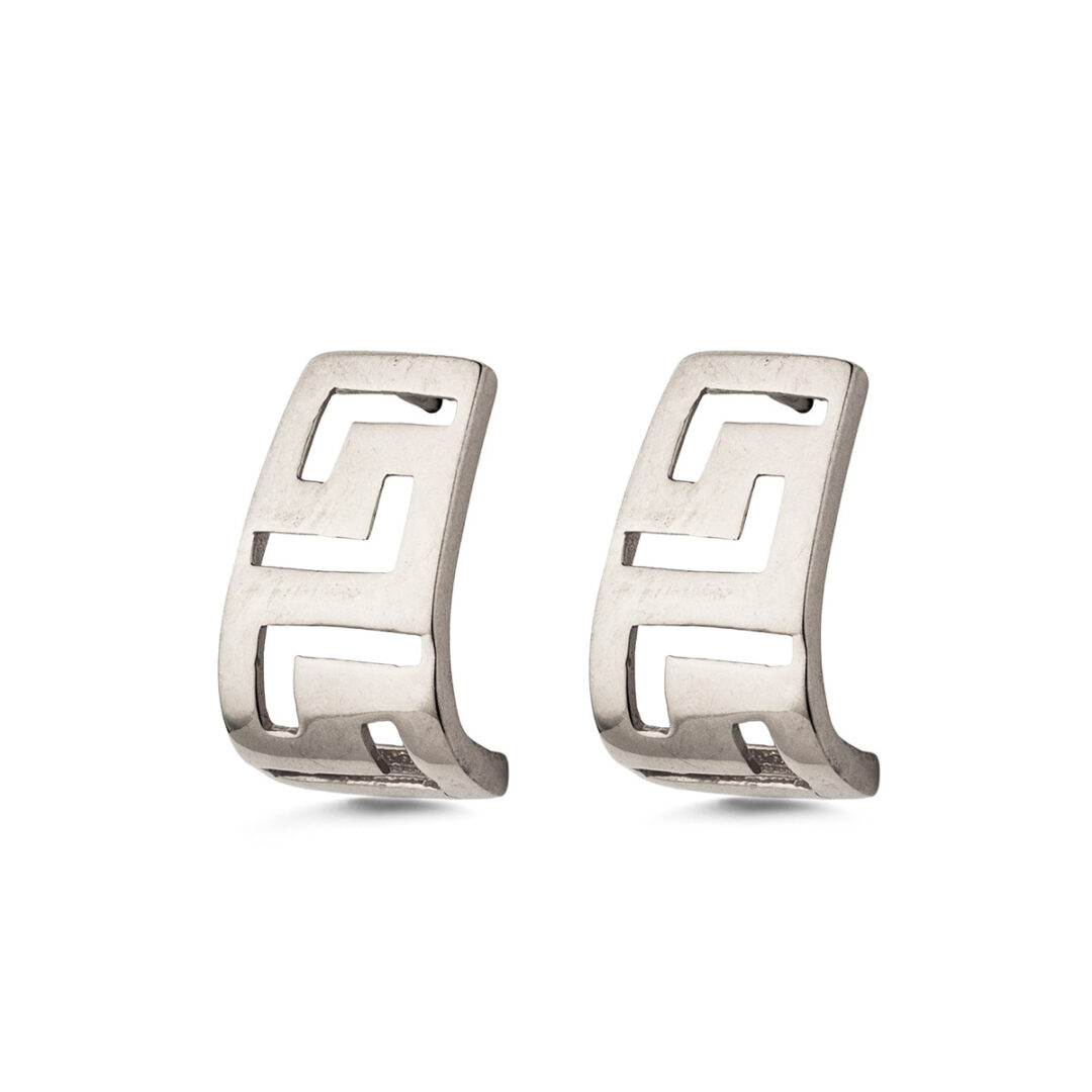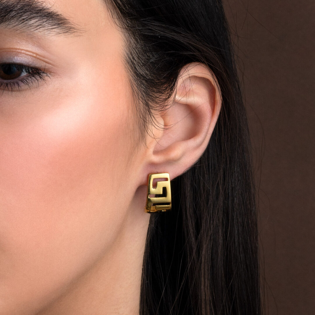 Earrings inspired by the Greek Key meander symbol.